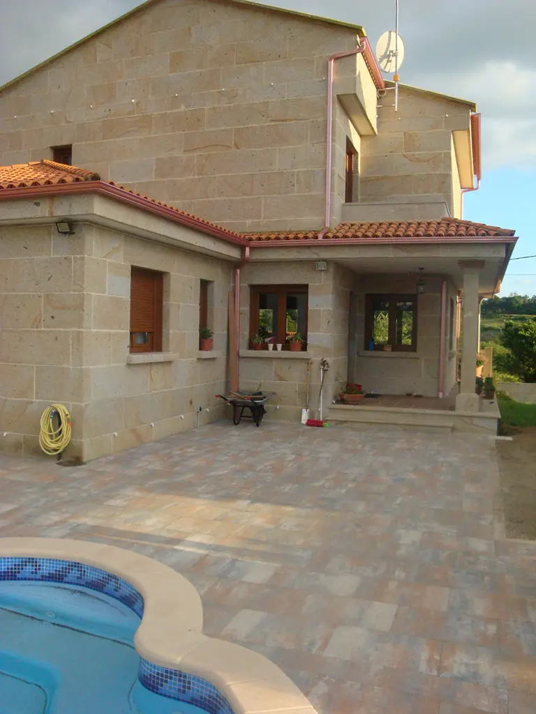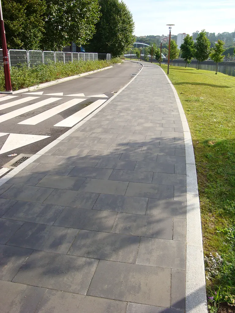 Se usa en pavimentación de zonas abiertas y llanas, peatonales fundamentalmente, aunque también admite de manera ocasional, vehículos ligeros en zonas de acceso a viviendas. La com