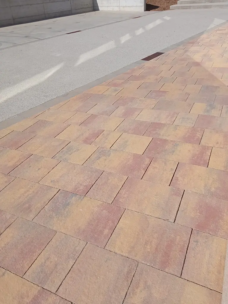 Pavimento conformada con 4 adoquines con dimensiones diferentes con superficie en acabado LISO para un estilo moderno, activo, personal y sin continuidad o en acabado RUGOSO elegante, natural y muy similar a la pavimentación con piedra natural.